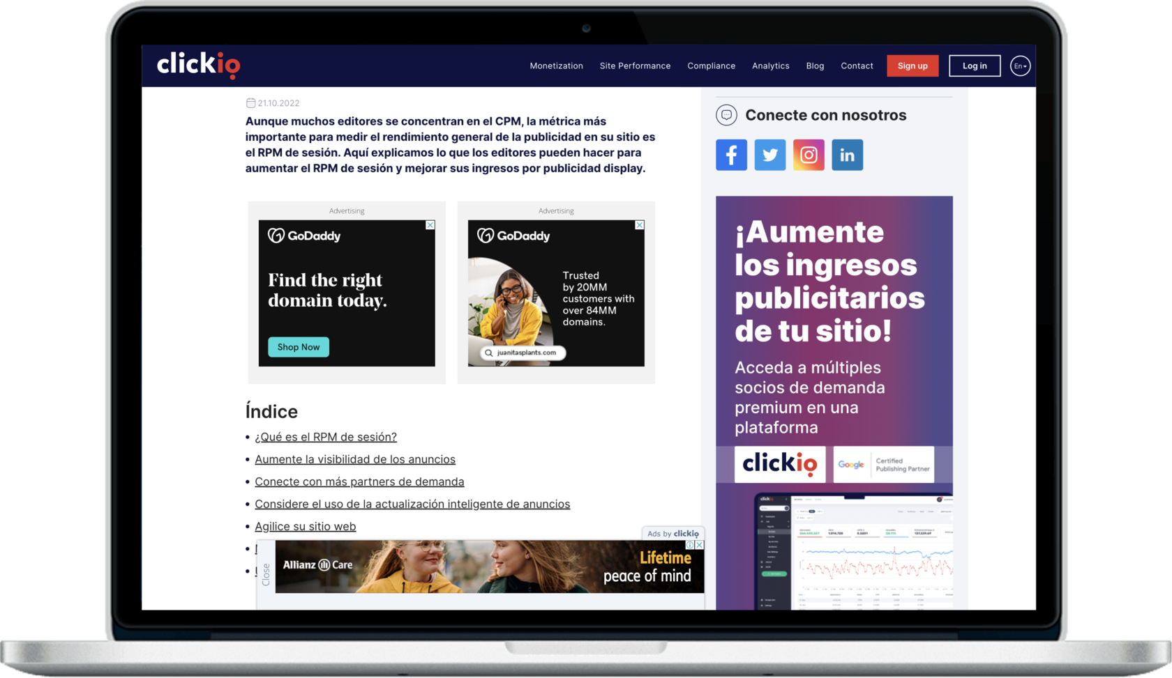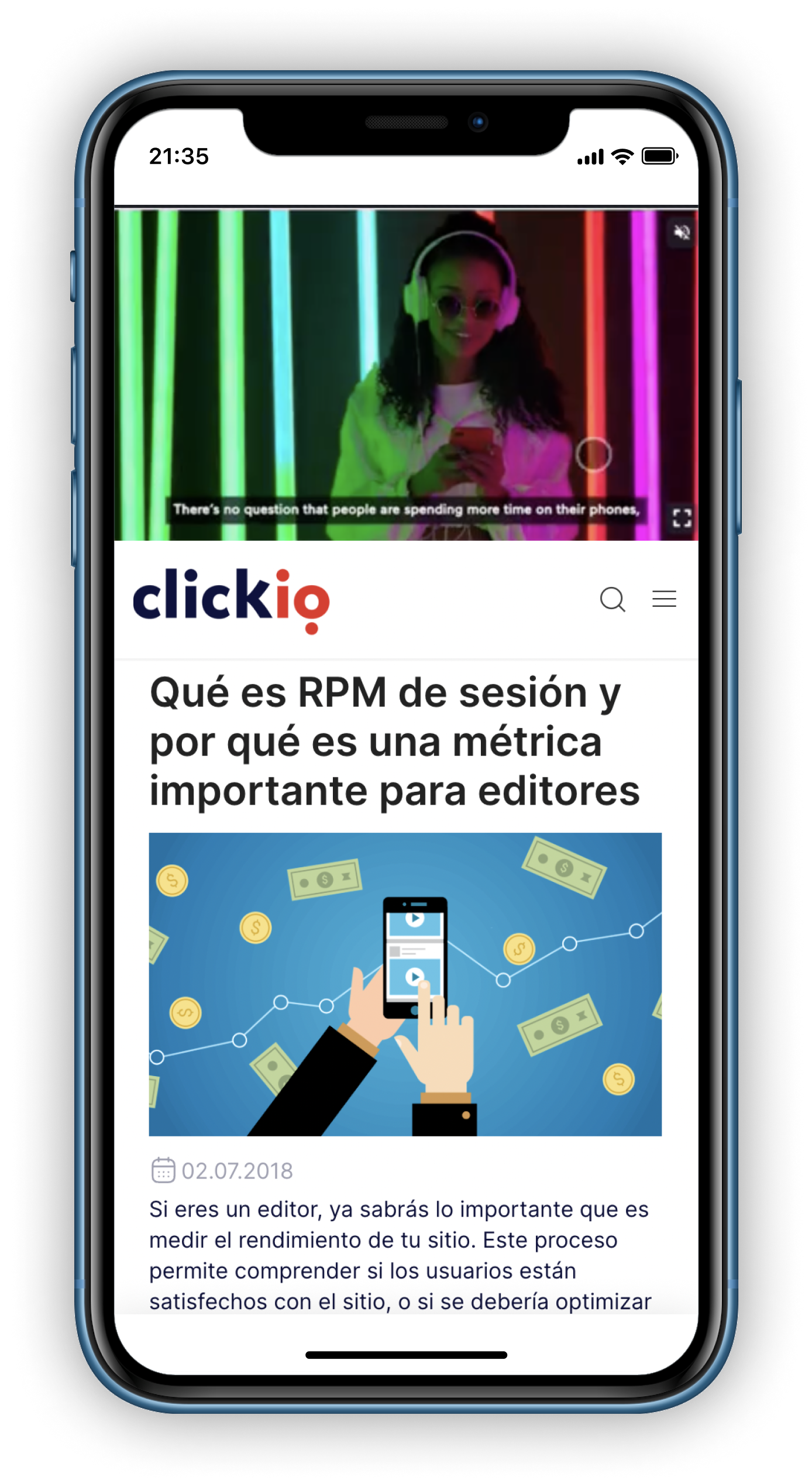 El anuncio se reproduce mientras los usuarios continúan navegando por el contenido y desaparece después de unos segundos, para una alta visibilidad y un formato no intrusivo.