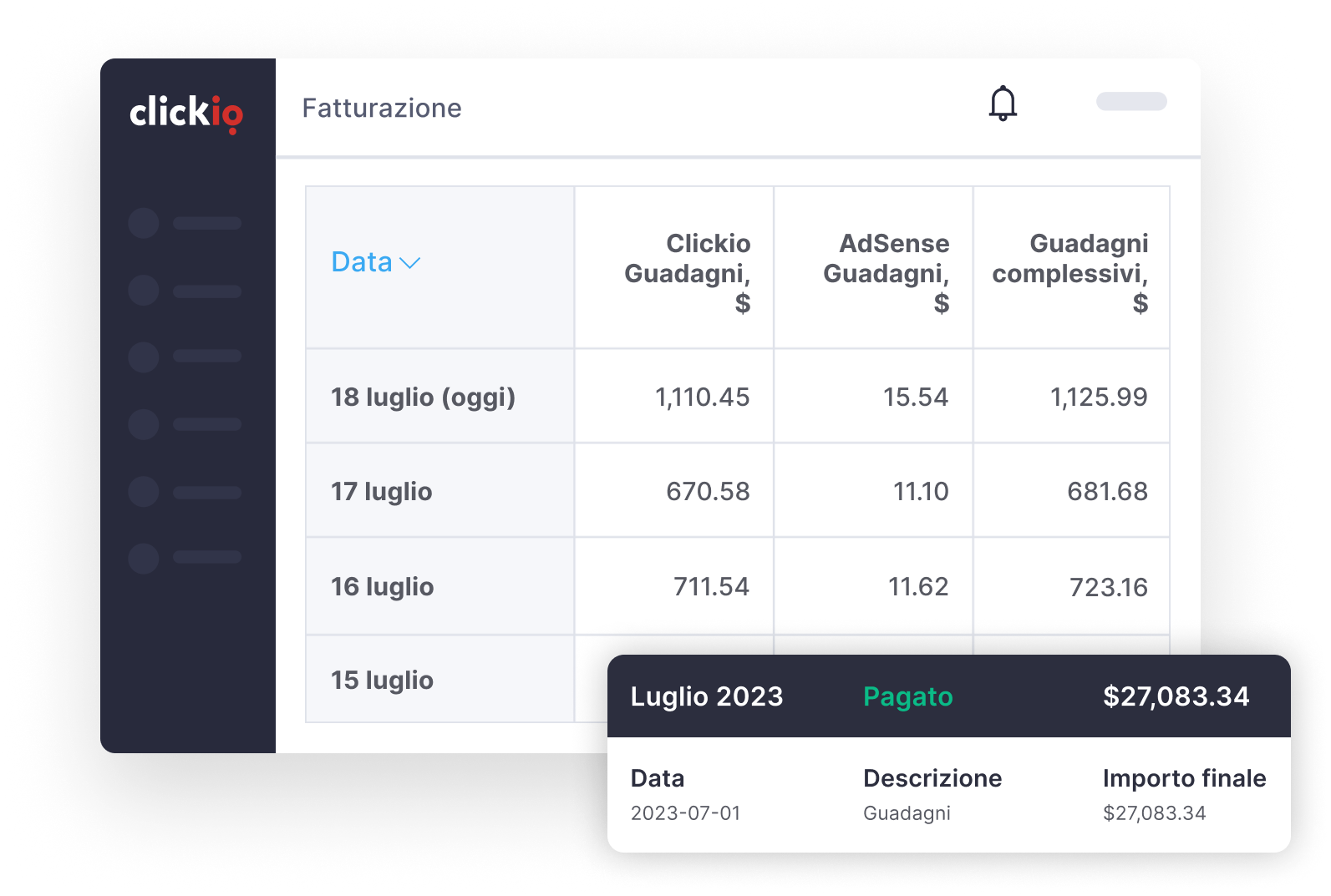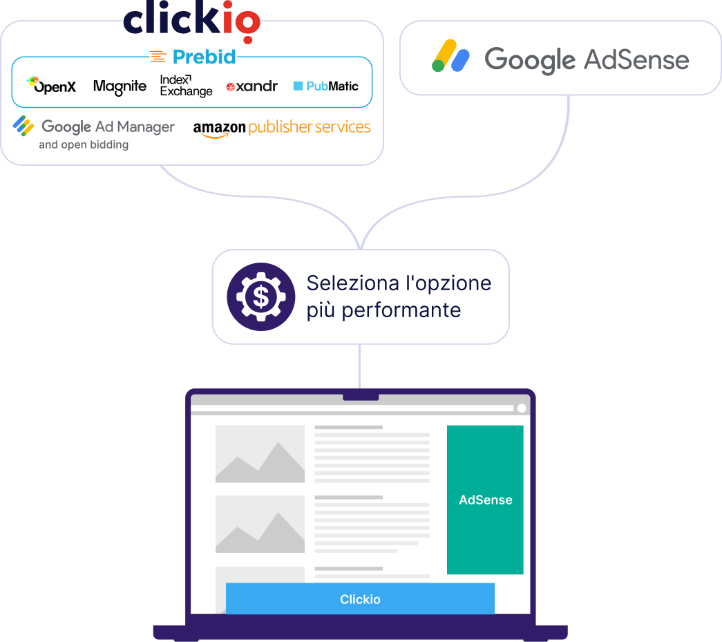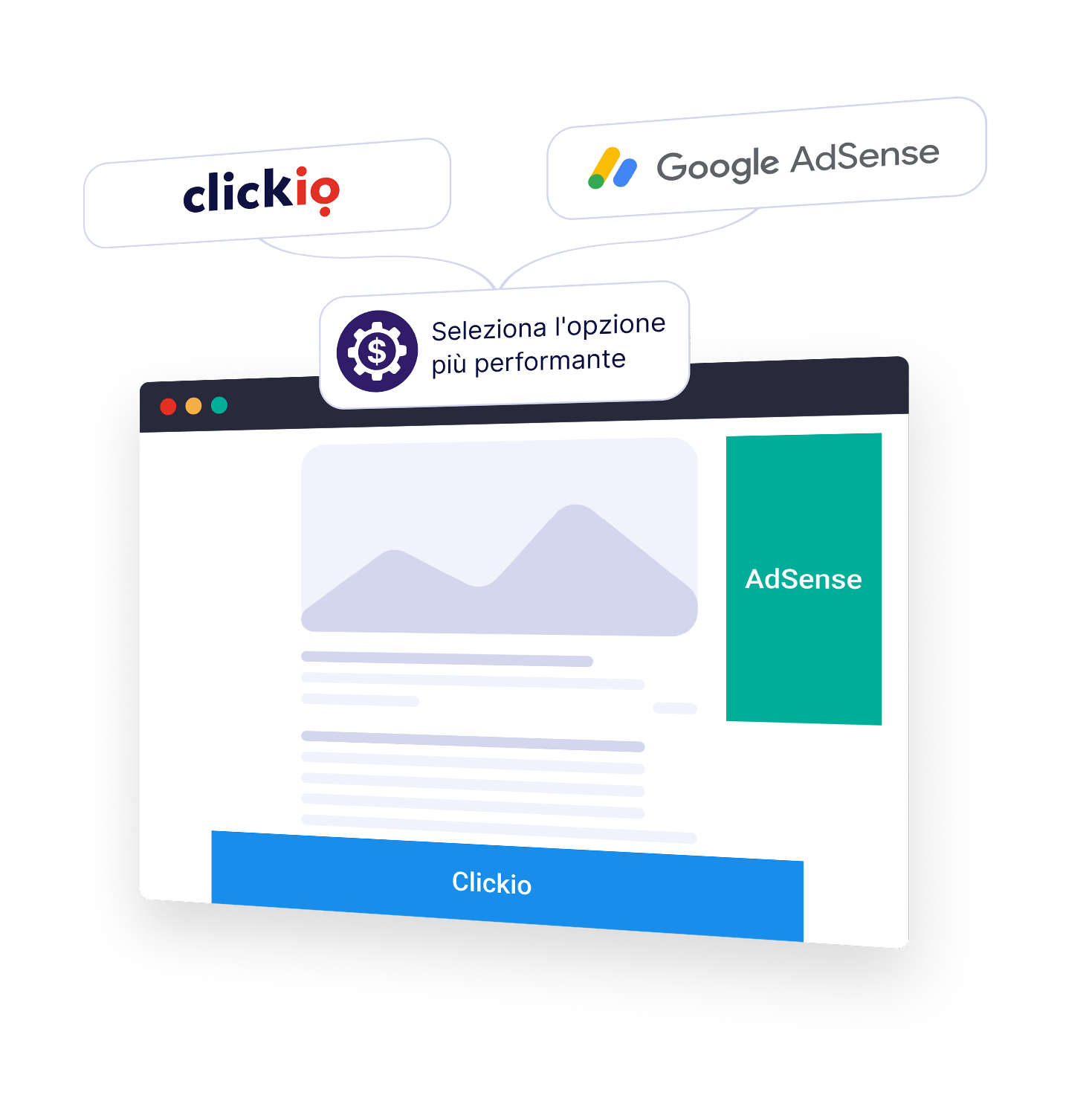 La nostra piattaforma, supportata dall'intelligenza artificiale, seleziona dinamicamente gli annunci con le migliori performance, assicurando un notevole aumento dei ricavi rispetto all'utilizzo esclusivo di AdSense. Grazie alla tecnologia avanzata di Clickio, accedi a una più ampia varietà di inserzionisti e a offerte più vantaggiose.