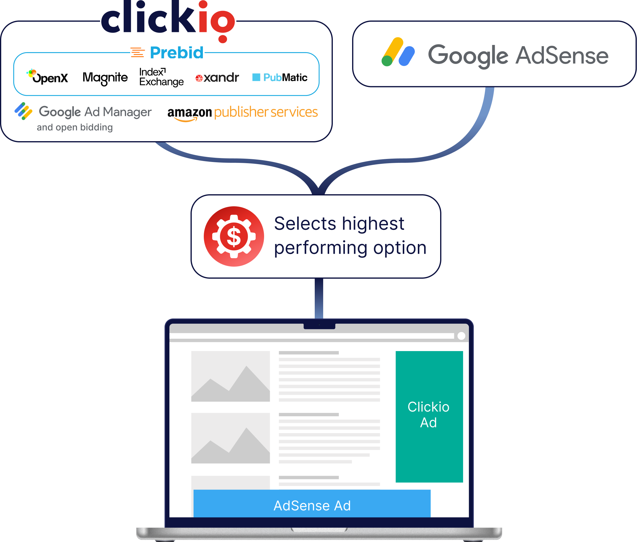 With AdSense Mediation, your existing AdSense units will compete against those from Clickio - so you have access to more advertisers and higher bids.